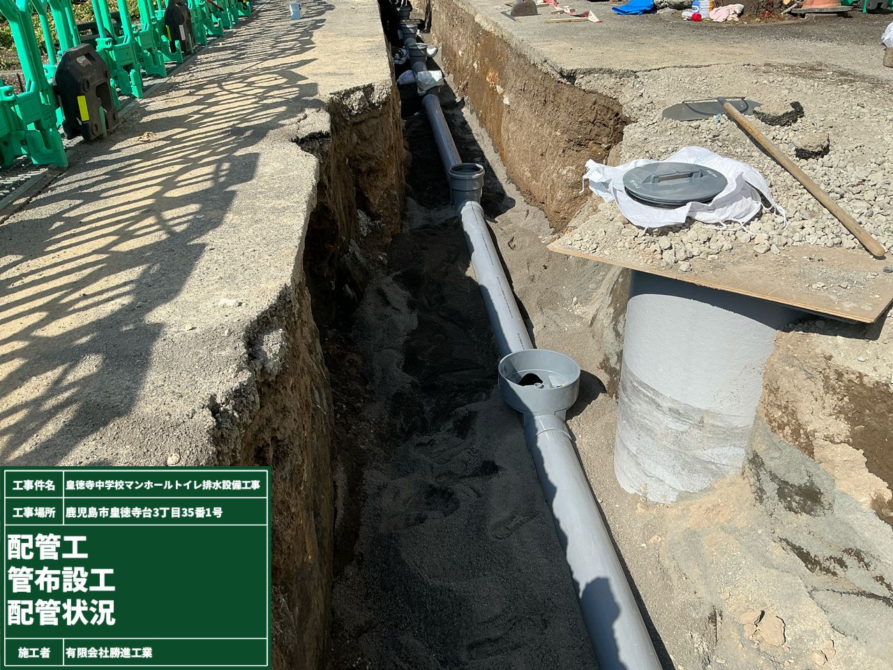 公共 2026.03.22 R7皇徳寺中学校マンホールトイレ排水設備工事 詳細情報 工事名:R7皇徳寺中学校マンホールトイレ排水設備工事 工事内容:皇徳寺中学校内の災害用マンホールトイレの新設工事 種別:公共(鹿児島市)